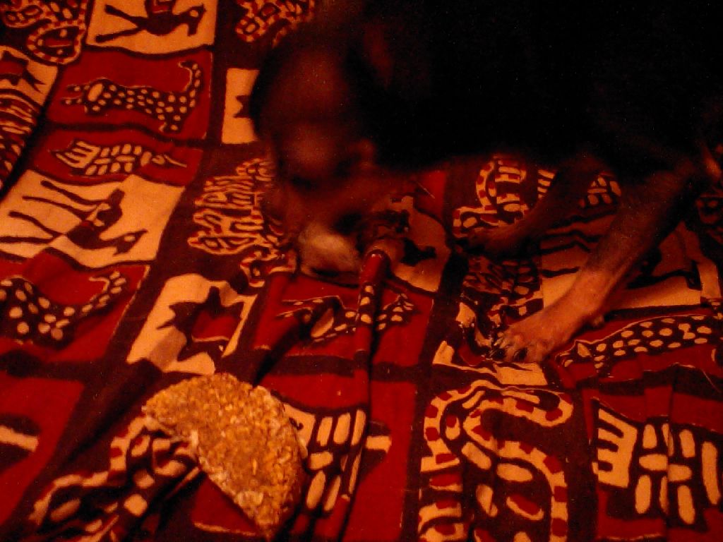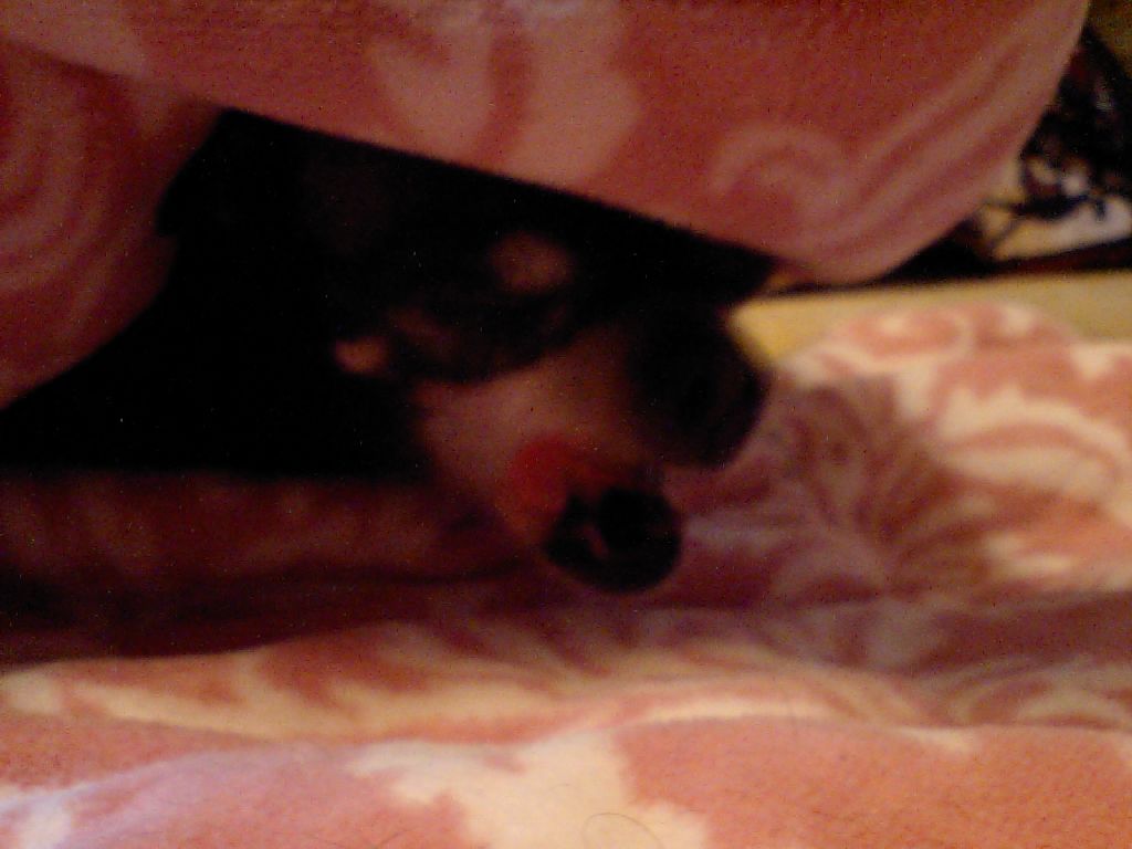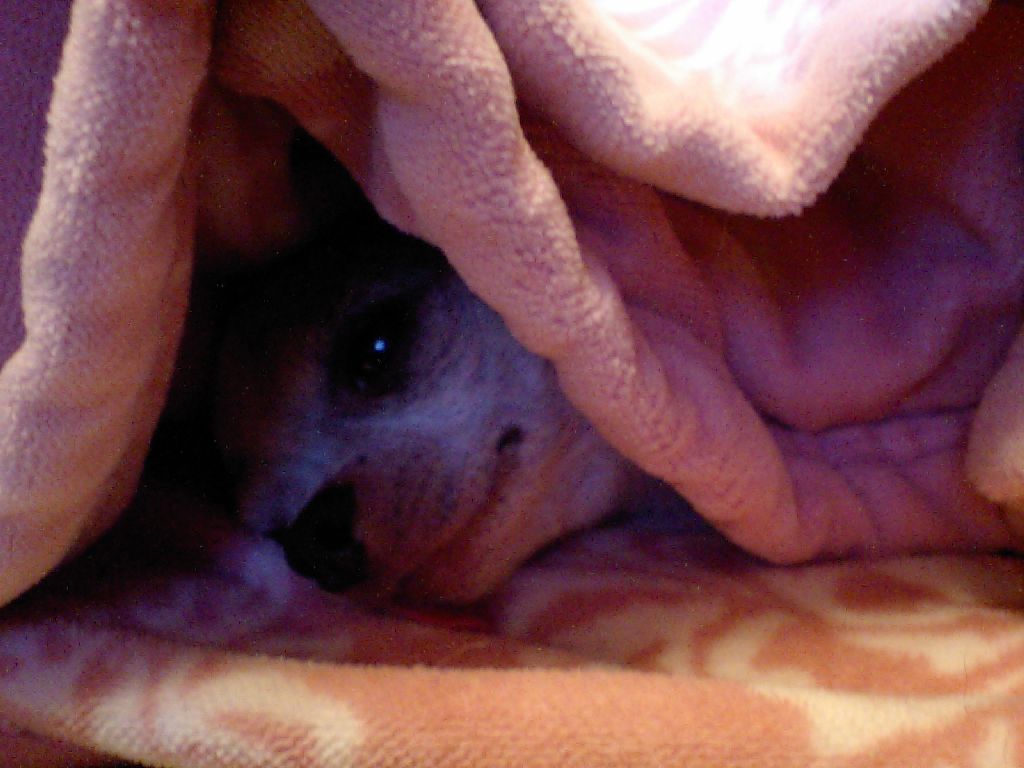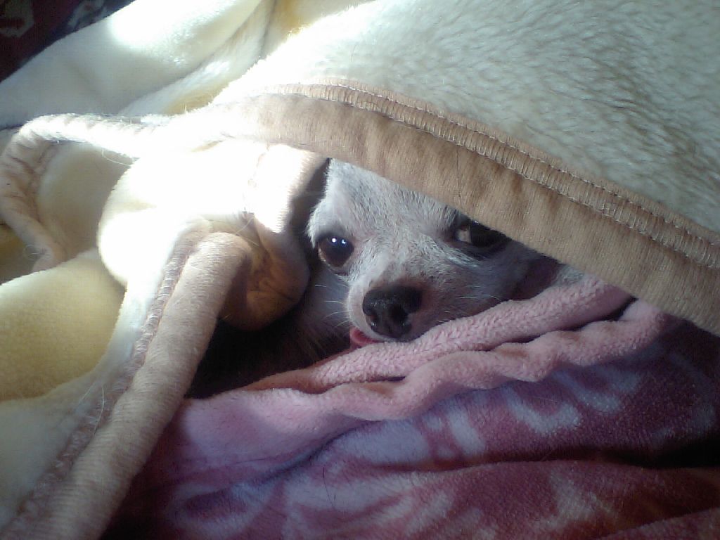 もうこの姿勢から一歩も動けず、首だけ回して携帯カメラを追うぼにたん(爆)