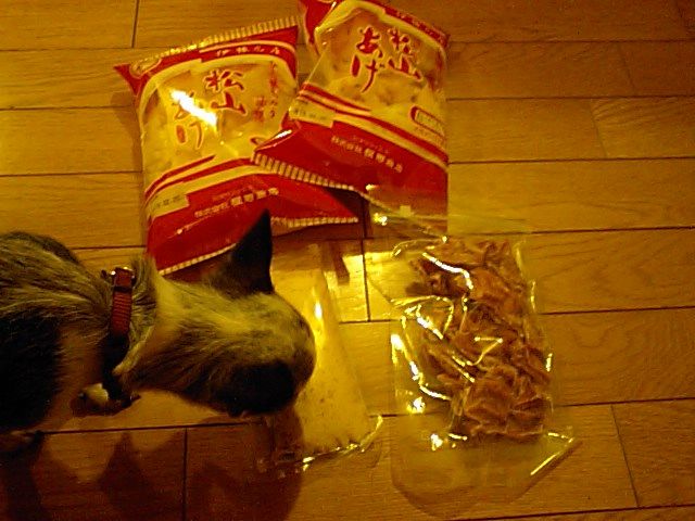 そして、ぼに&くらにまで、ささみふりかけとささみジャーキー!!ヾ⊆ ̄ ^⊇ ε==3⊆^∇)┬┬~