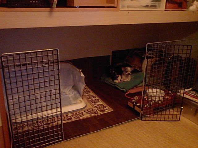 キャリーを2個並べた横にお気に入りの毛布を置いて、更にあんか。ぼに&くらはコードで遊んだりする事は無いのですが、つまづき防止の意味もあるかと思って、コードはクッションフロアの下を通してあります。