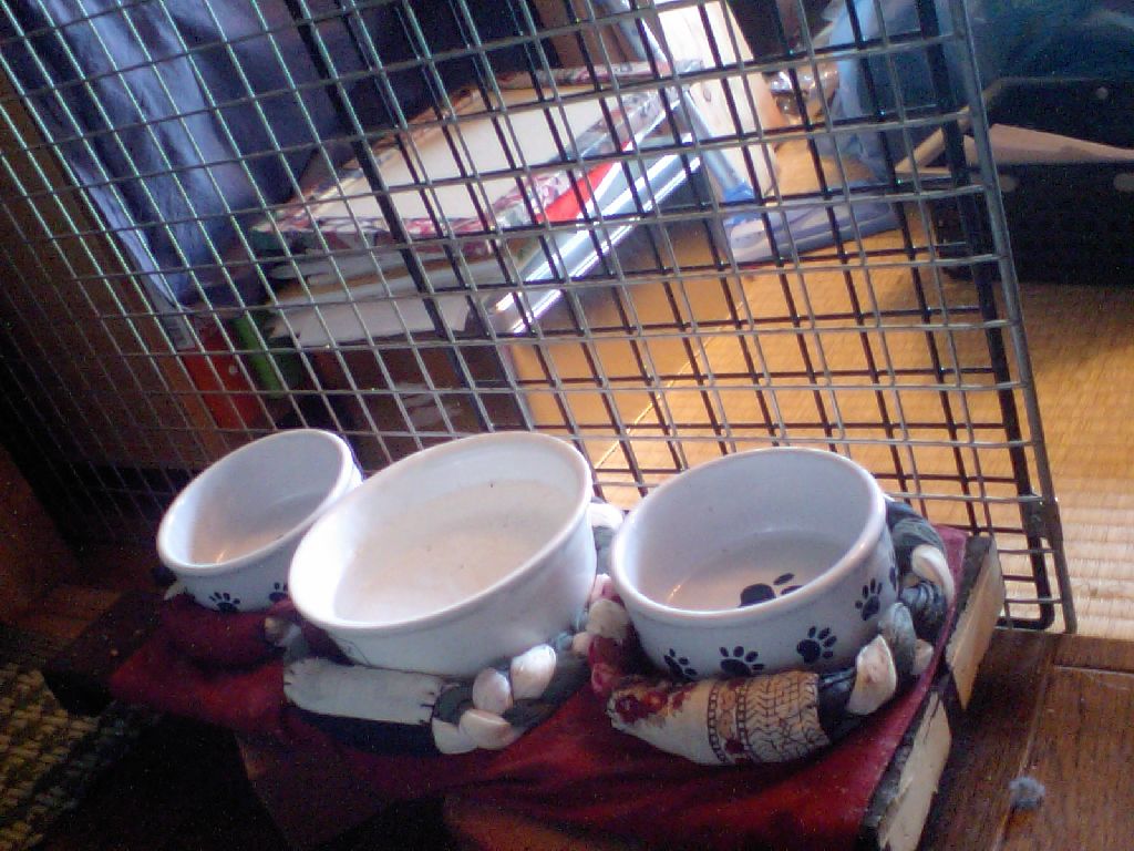 今までぼに&くらは部屋の内側を向いて(つまり、窓に背を向けて)食べていたんだよね~(^^;)やっぱり明るい方が良いね。