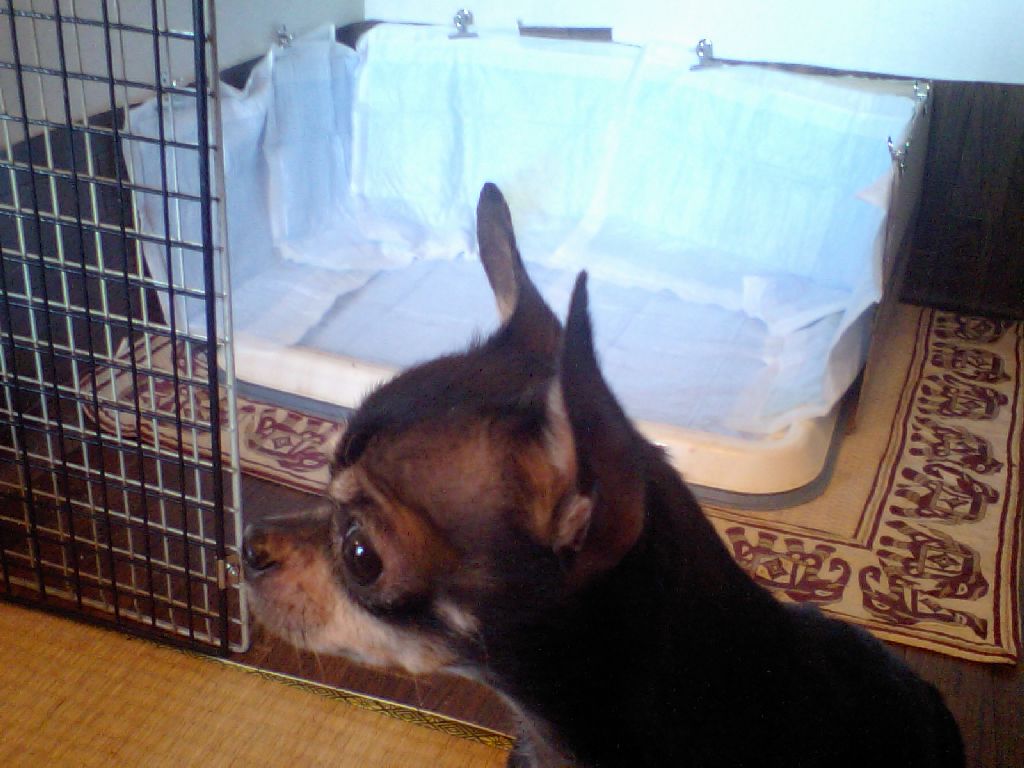 前から使っていた敷物&トレイと仕切りのためにダンボールを少し使って、3面囲む形です。